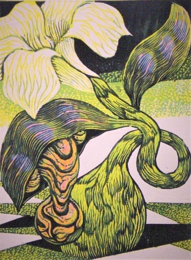 作品名:NO-02「見て欲しい」 個展情報:御囲 章 木版画展 制作年月:2024年 モチーフ:抽象画、植物 仕様:版種:木版画 額サイズ(㎝)タテⅹヨコ 54.5cm×67.5cm 絵サイズ(㎝) タテⅹヨコ 30cm×45cm シートサイズ(㎝) タテⅹヨコ 39cm×54cm ■表現技法 彫りすすめによる凸版木版画 油性インク刷りと一部水性手彩色 作品説明(コメント): 画面に登場する植物らしきものは実存する植物ではなく、人が単体や複数で存在して起こる日常を「擬植物化」して認識しております。不自由に「地に足がついた」生きる様子に面白さを感じております。 ---ご注文時には下記にてフレームあり、フレームなしを選択してください。--- ■御囲章(Akira Okakoi) プロフィール 1972年 愛知県知多市 生誕 1997年 多摩美術大学美術学部絵画科版画専攻 卒業 1999年 同学大学院美術研究科 修了 現在、名古屋市内にある協同工房(アトリエ三好)にて制作活動中 ■最近の活動歴 2006年~2025年 多摩美中部の会展 (名古屋) 2009年~2011年 グループ展 In Progress (GALLERY ART POINT 銀座) 2012年~2018年 グループ展 Keep Going (KEY Gallery & 青樺画廊 京橋) 2022年・2024年 FLAT展 ギャラリー誠文堂(相模原市) 川上澄生木版画大賞展 入選 1999年 2000年 2004年 2006年~2017年 福光 棟方記念版画大賞展 入選 2000年 2004年 2007年 東京ミニプリントトリエンナーレ 入選 1999年 2002年 2005年 第24回国民文化祭しずおか2009 洋画部門 奨励賞 2009年 --------------------------------------------------------- ■表現技法 彫りすすめによる凸版木版画 油性インク刷りと一部水性手彩色 ■作品のコンセプト 身の周りのありふれた出来事や世相などをテーマに、植物の部位や在り方から感じられる「生き物」としての強烈な存在感を転換して、「人間」の内や外を作者なりに表現しようと、木版画での表現にて葛藤しております。